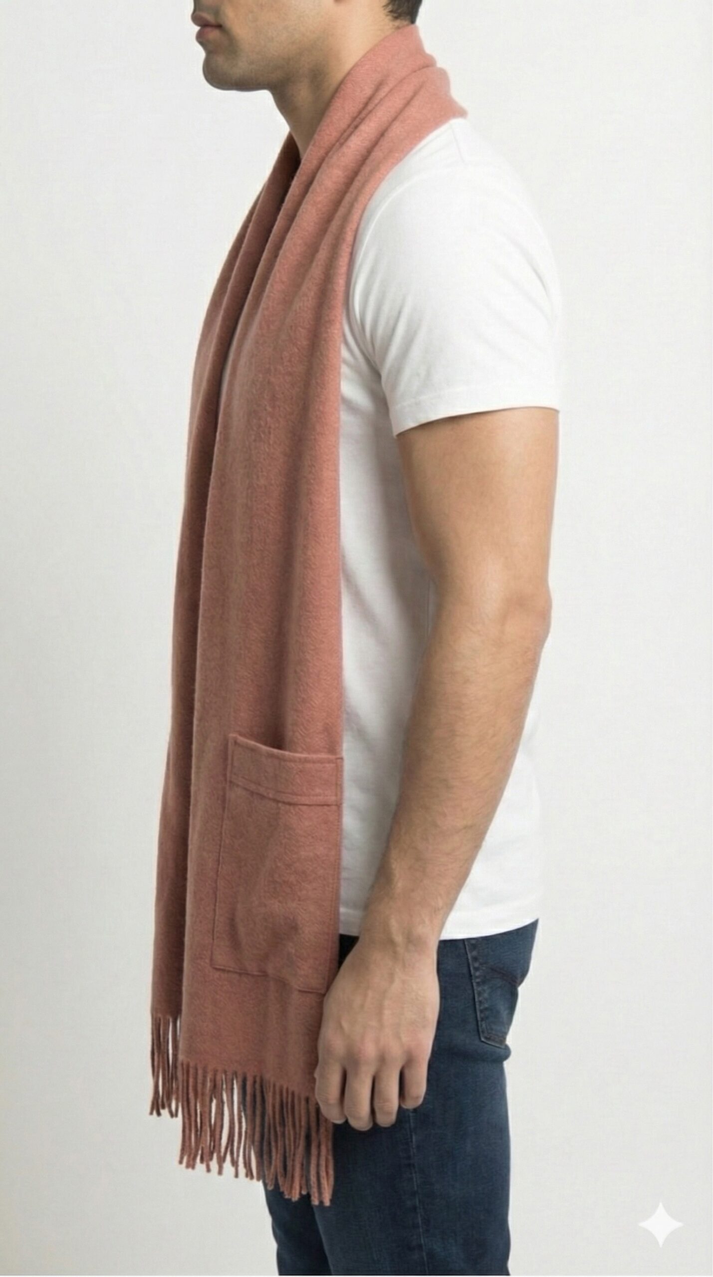 The shawl’s gentle terra-rose (dusty rose / warm rust-rose) tone adds a subtle dash of color — muted enough for everyday wear, yet rich enough to elevate a simple outfit. Whether you pair it with western jackets, sweaters, or ethnic kurtas — it effortlessly enhances your look. Its generous length and soft drape let you style it multiple ways: wrapped snug around the neck as a muffler, draped over shoulders as a shawl, or worn loose as a casual wrap.